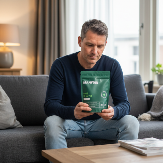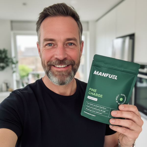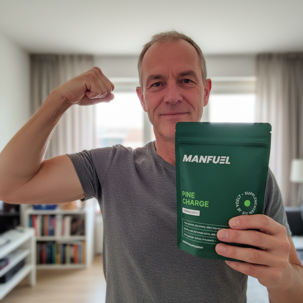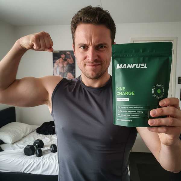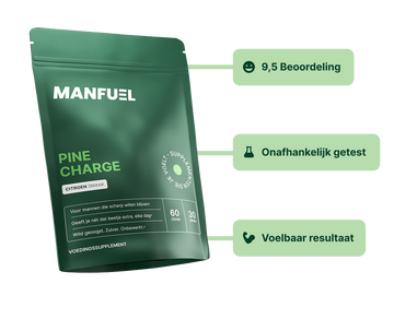 Manfuel Pine Charge bestaat uit maar twee ingrediënten: pine pollen en natuurlijk citroenpoeder. Simpel, zuiver en effectief. Beide ingrediënten zijn onafhankelijk labgetest, zodat jij precies weet wat je binnenkrijgt.